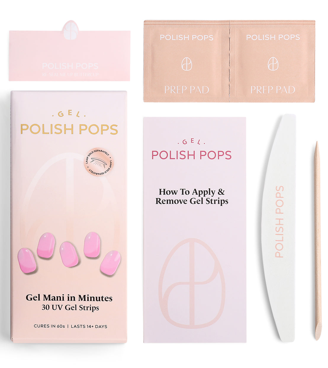 Get a picture perfect manicure in minutes with Polish Pops! Application is easy, just peel, press, cure, and admire!