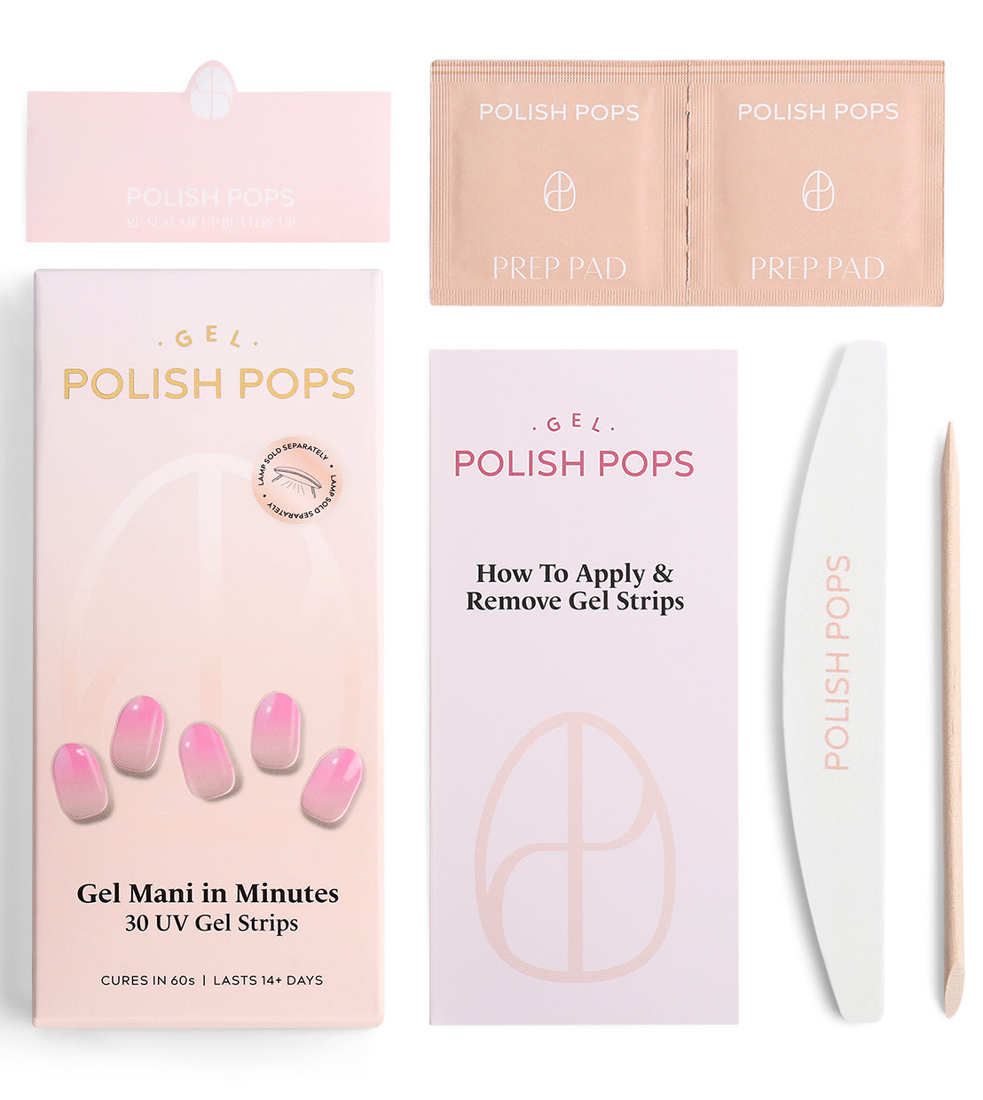 Get a picture perfect manicure in minutes with Polish Pops! Application is easy, just peel, press, cure, and admire!