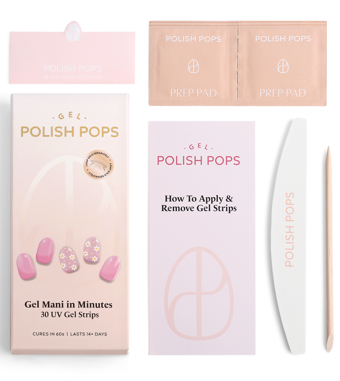 Get a picture perfect manicure in minutes with Polish Pops! Application is easy, just peel, press, cure, and admire!