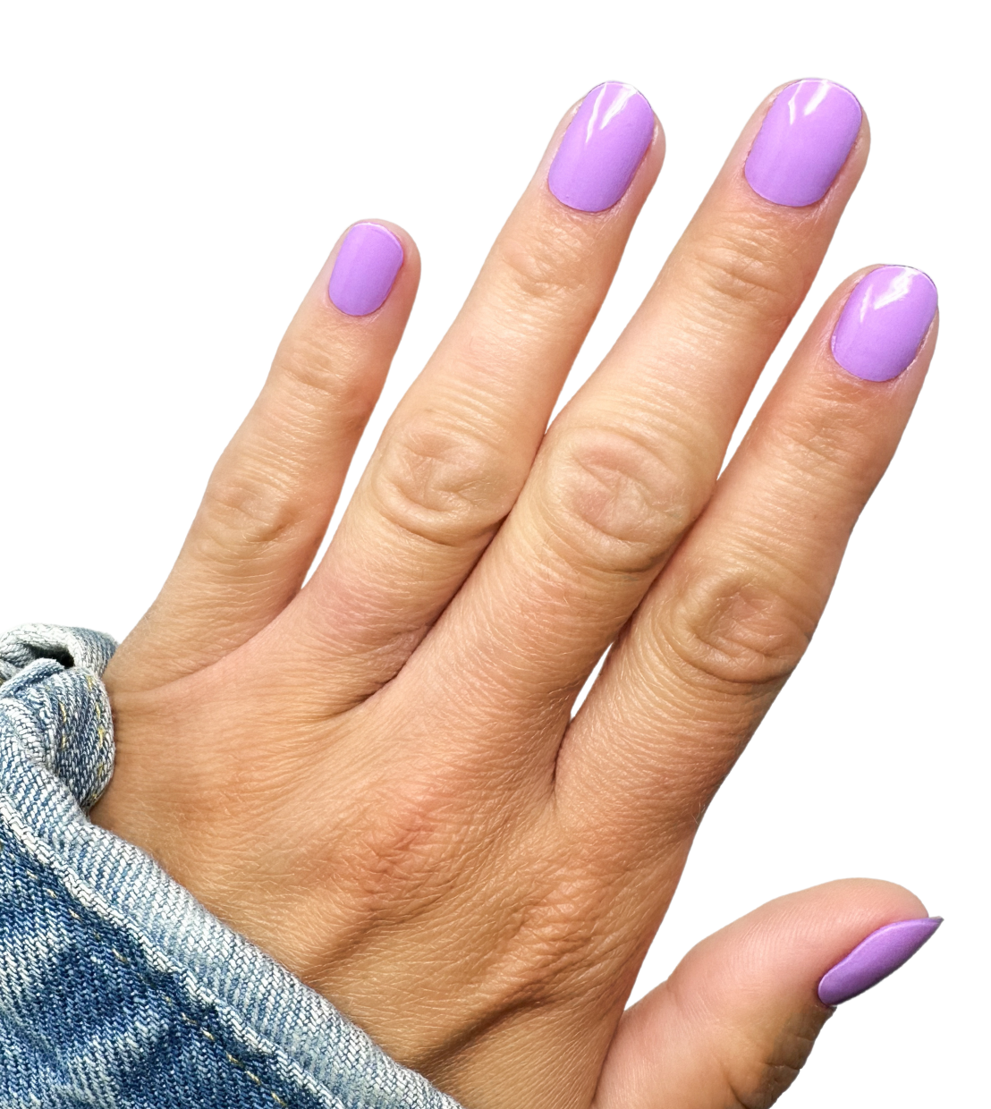 This is a really fun cheerful lavender color. It was bright but not neon. I paired it with the lemons from My Main Squeeze and it was really cute. Easy to apply and lasted several weeks!