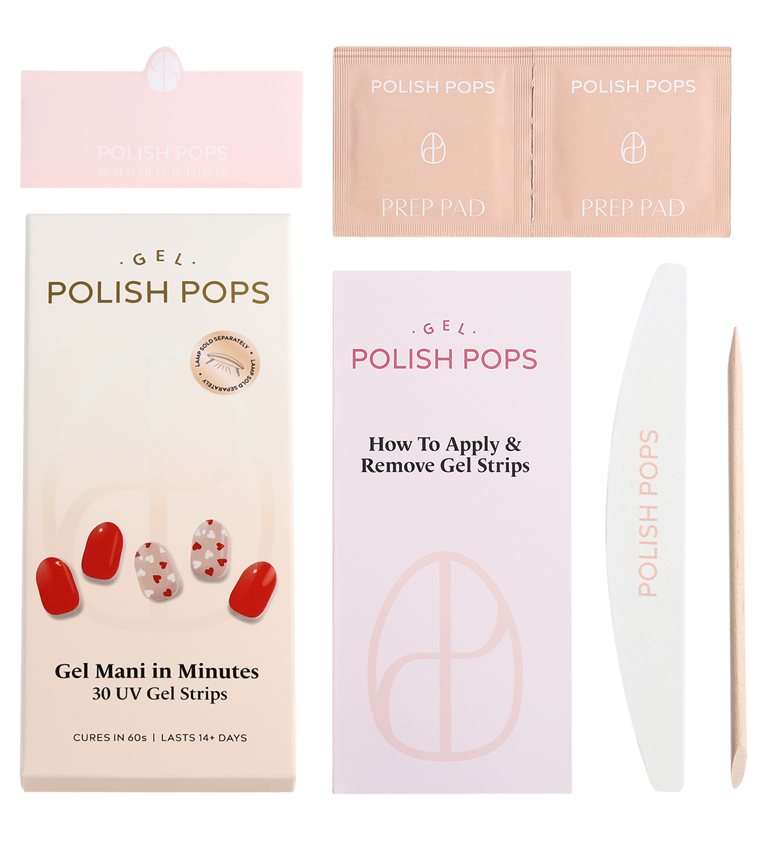 Get a picture perfect manicure in minutes with Polish Pops! Application is easy, just peel, press, cure, and admire!