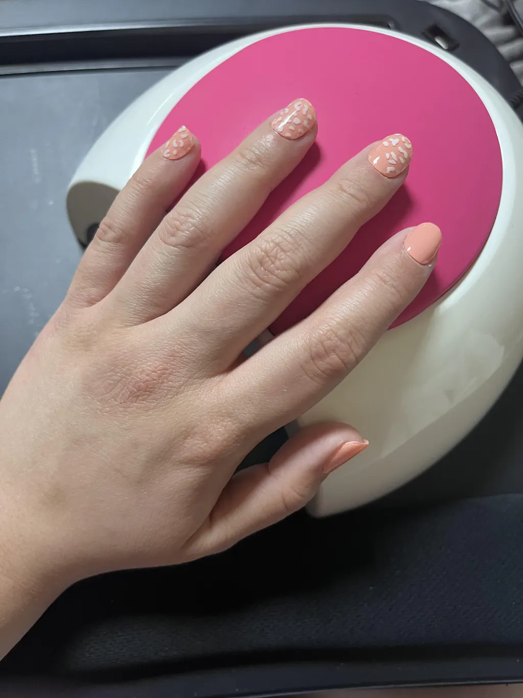 Apply oil to the flat end of the wooden cuticle stick and gently shimmy it underneath the edges to loosen the nail wrap, OR wipe clean with acetone-free nail polish remover.