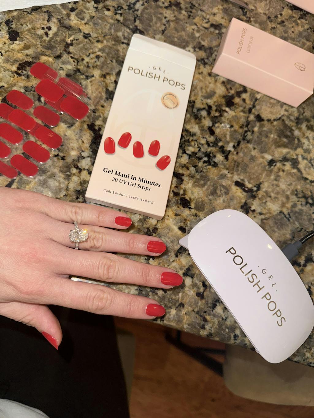 Get a picture perfect manicure in minutes with Polish Pops! Application is easy, just peel, press, cure, and admire!