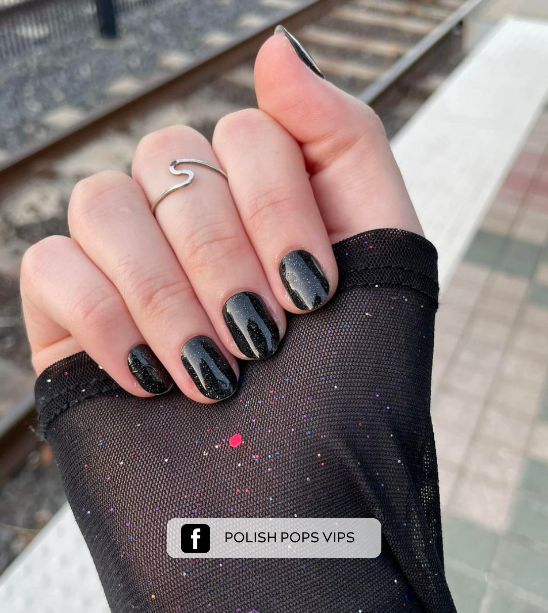 Midnight sky is a great black glitter. Easy to apply and lasted over 2 weeks.