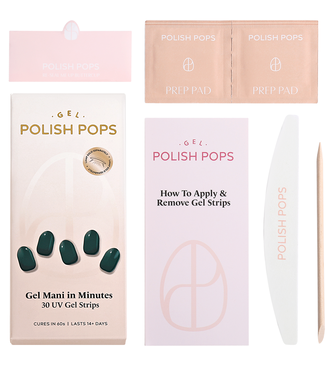 Get a picture perfect manicure in minutes with Polish Pops! Application is easy, just peel, press, cure, and admire!