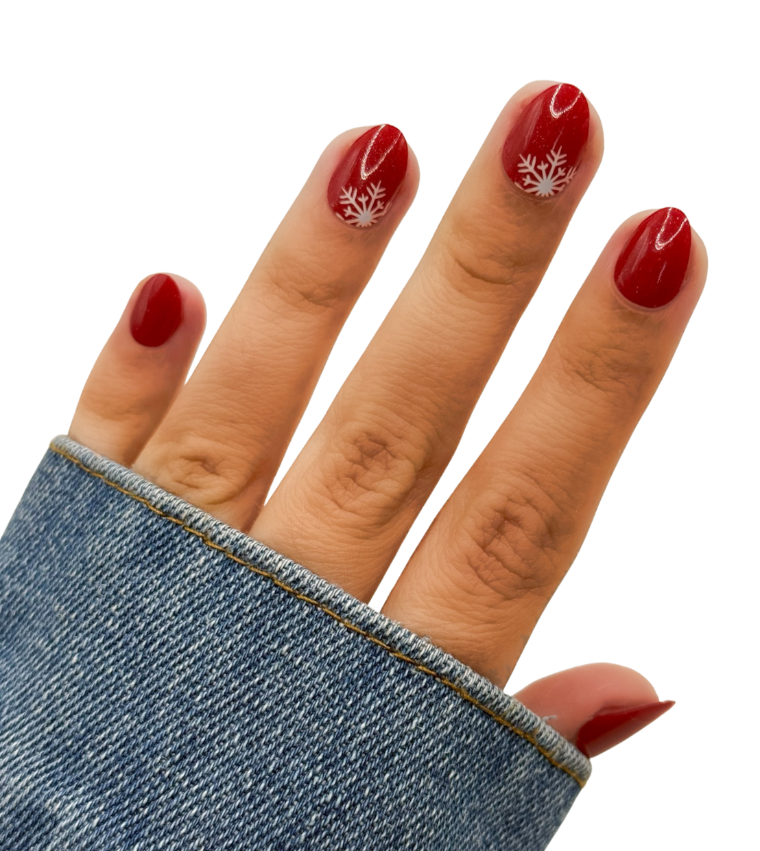 Love the sparkle and the shade of red. The snowflake accent nails were a cute minimal way to tie them into the holiday/winter