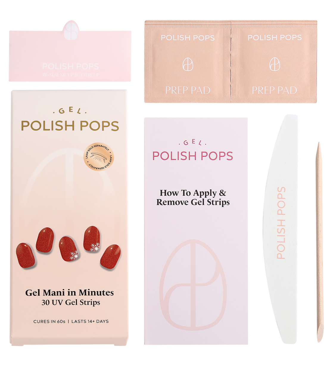 Get a picture perfect manicure in minutes with Polish Pops! Application is easy, just peel, press, cure, and admire!