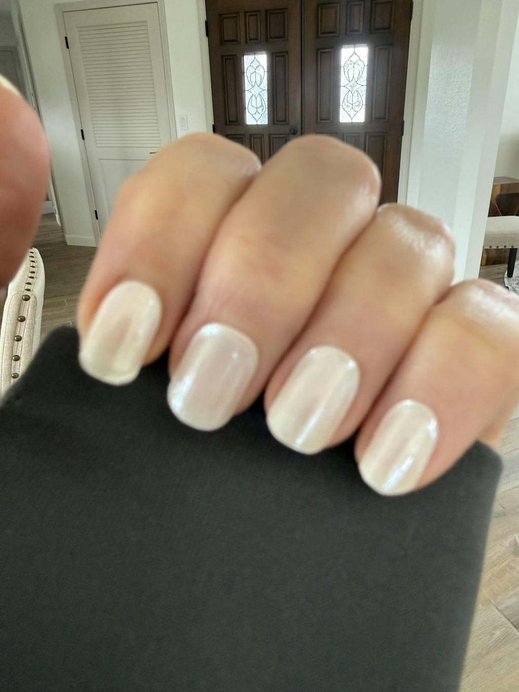 The iridescent white is so classy and it goes with everything. My manicure is 8 days old and still in great shape. Not bad for my first try. I already placed my second order and decided what my next two manicures will be.