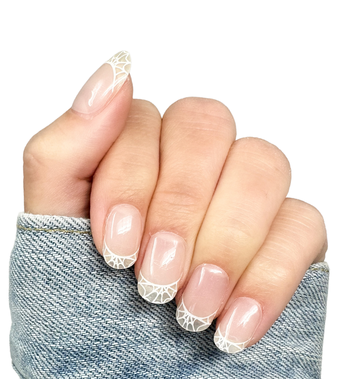Apply oil to the flat end of the wooden cuticle stick and gently shimmy it underneath the edges to loosen the nail wrap, OR wipe clean with acetone-free nail polish remover.