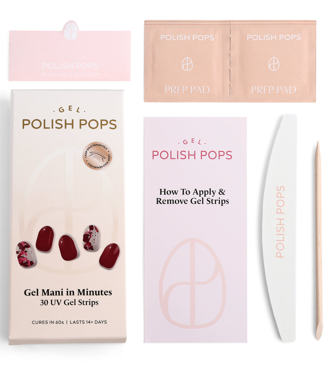 Get a picture perfect manicure in minutes with Polish Pops! Application is easy, just peel, press, cure, and admire!