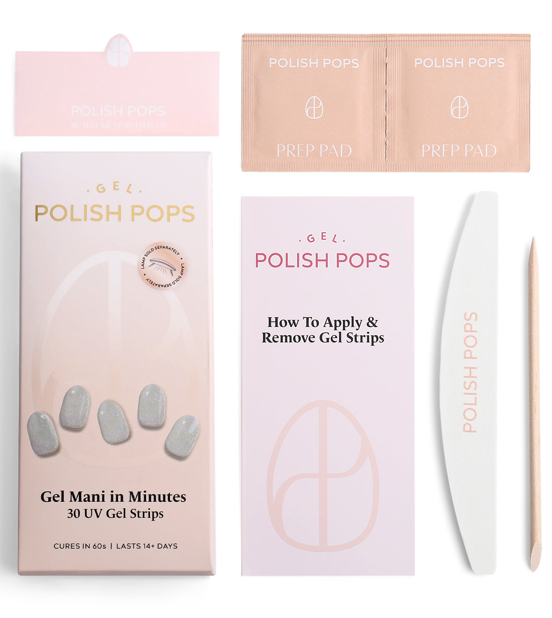 Get a picture perfect manicure in minutes with Polish Pops! Application is easy, just peel, press, cure, and admire!