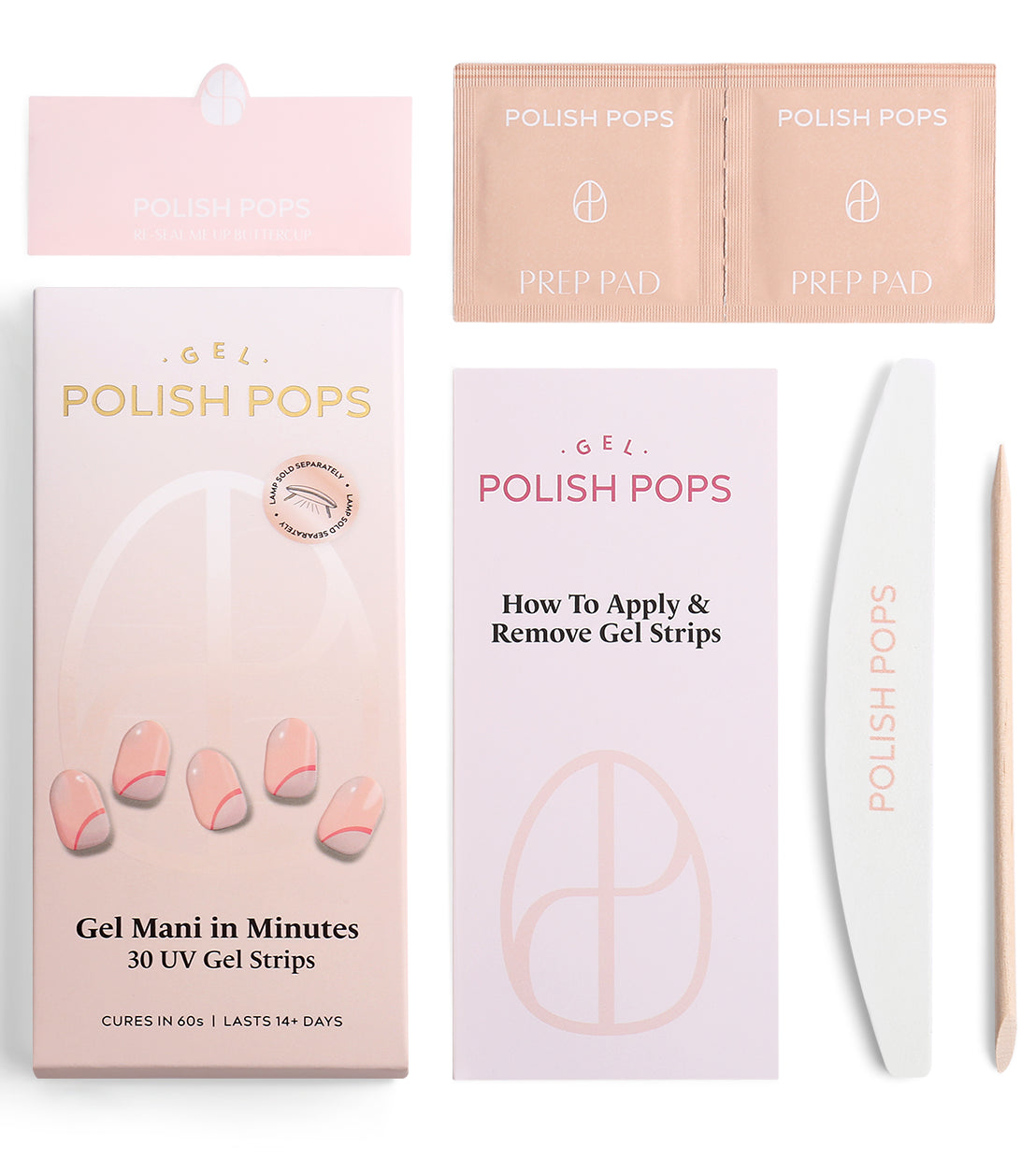 Get a picture perfect manicure in minutes with Polish Pops! Application is easy, just peel, press, cure, and admire!
