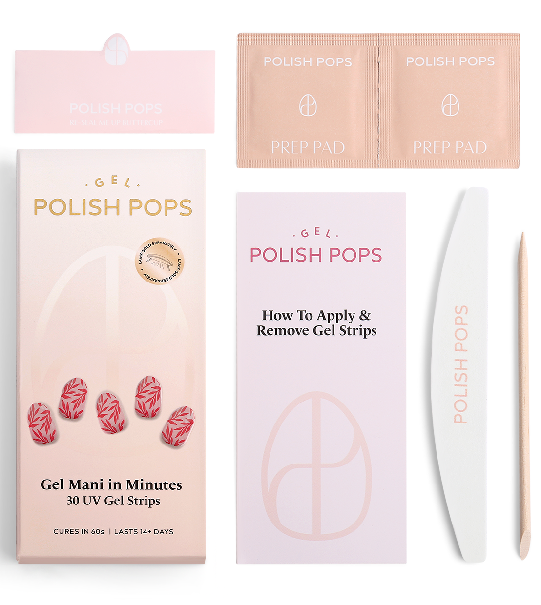 Get a picture perfect manicure in minutes with Polish Pops! Application is easy, just peel, press, cure, and admire!