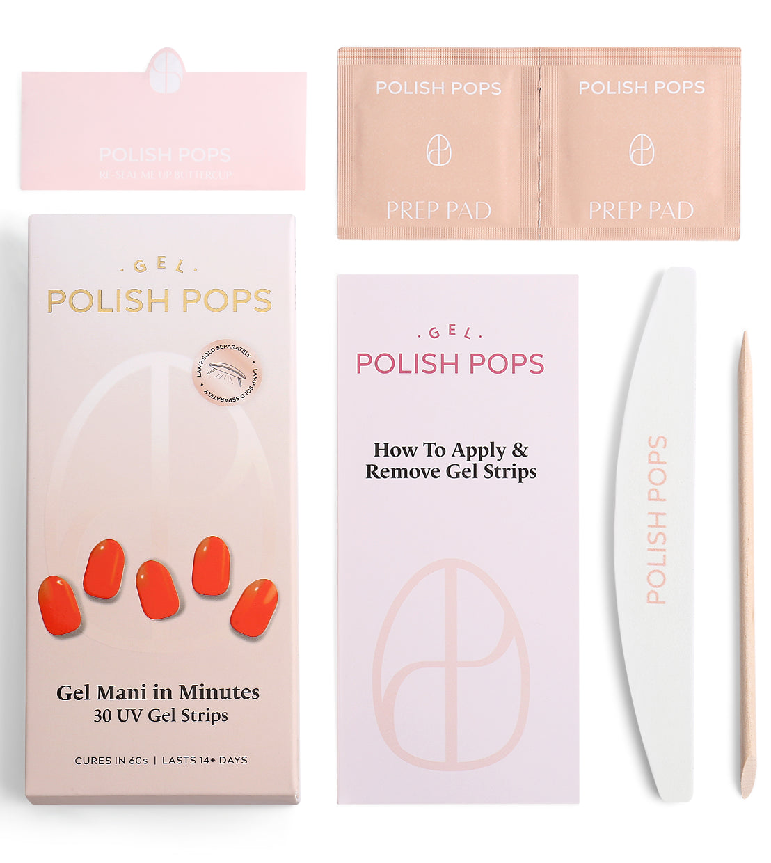 Get a picture perfect manicure in minutes with Polish Pops! Application is easy, just peel, press, cure, and admire!