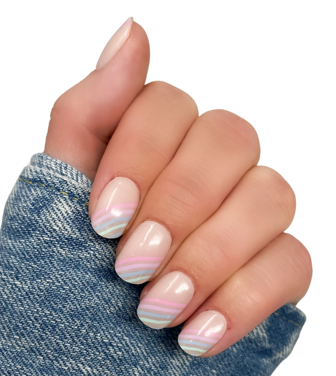 I LOVE these, but I have very short nails, so not a lot of the cute stripes actually ended up ON my nail! When I do my second application of these I'm going to try to flip them upside down so all the stripes are on my nail! I think mine are short enough that it would work! Either way, these are so cute!