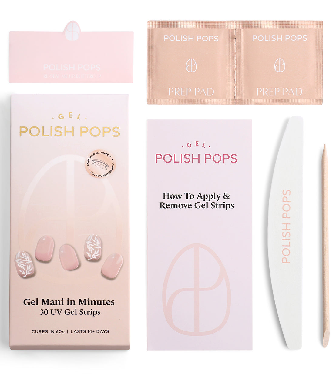 Get a picture perfect manicure in minutes with Polish Pops! Application is easy, just peel, press, cure, and admire!