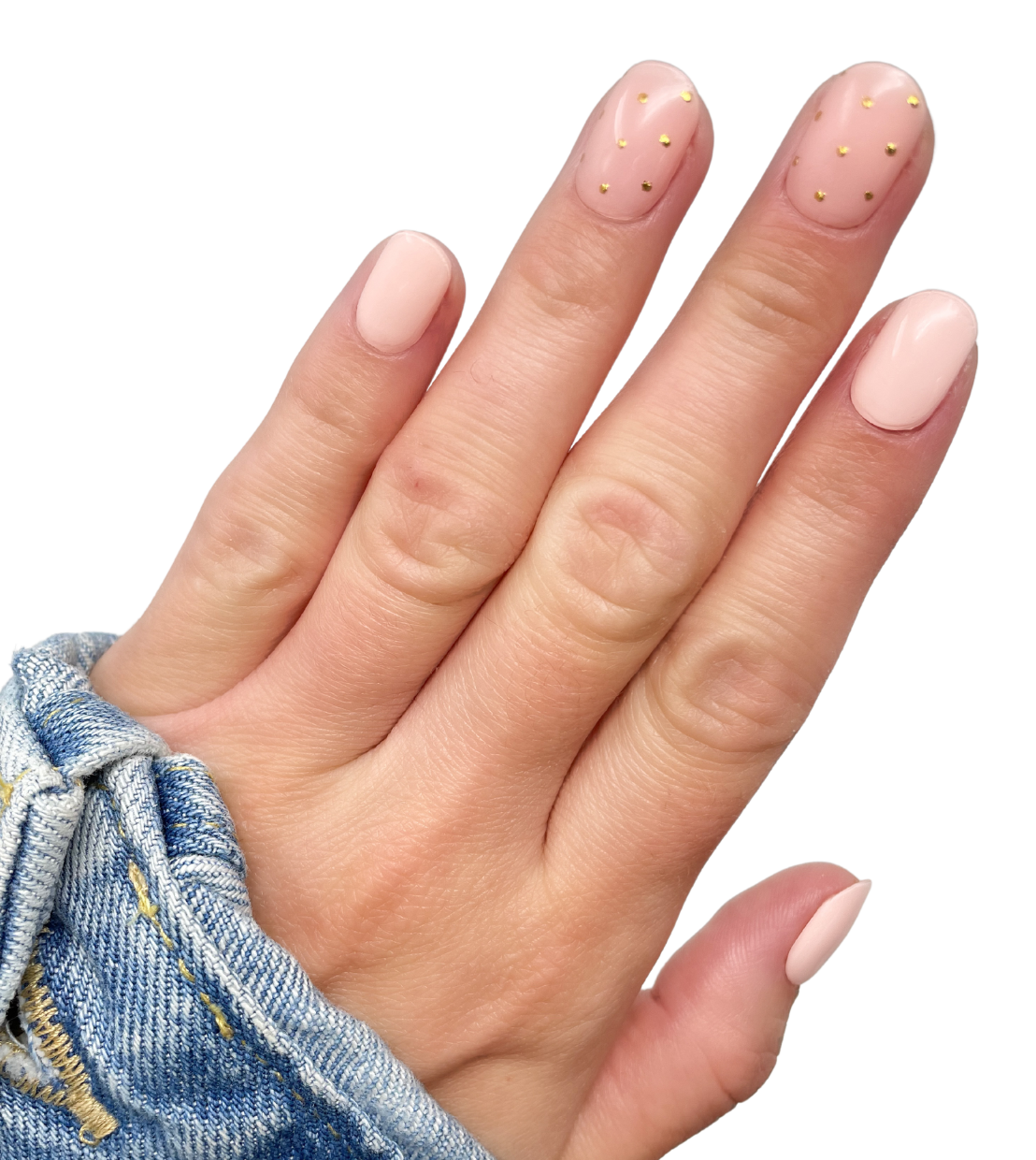 This is my absolute favorite set! I love how delicate the gold dots are and the pink color is super soft.