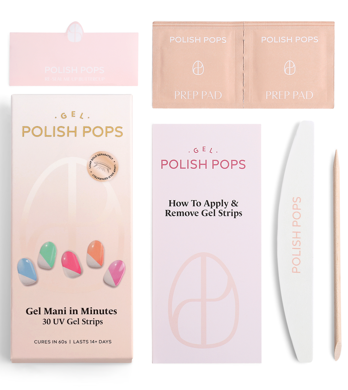 Get a picture perfect manicure in minutes with Polish Pops! Application is easy, just peel, press, cure, and admire!