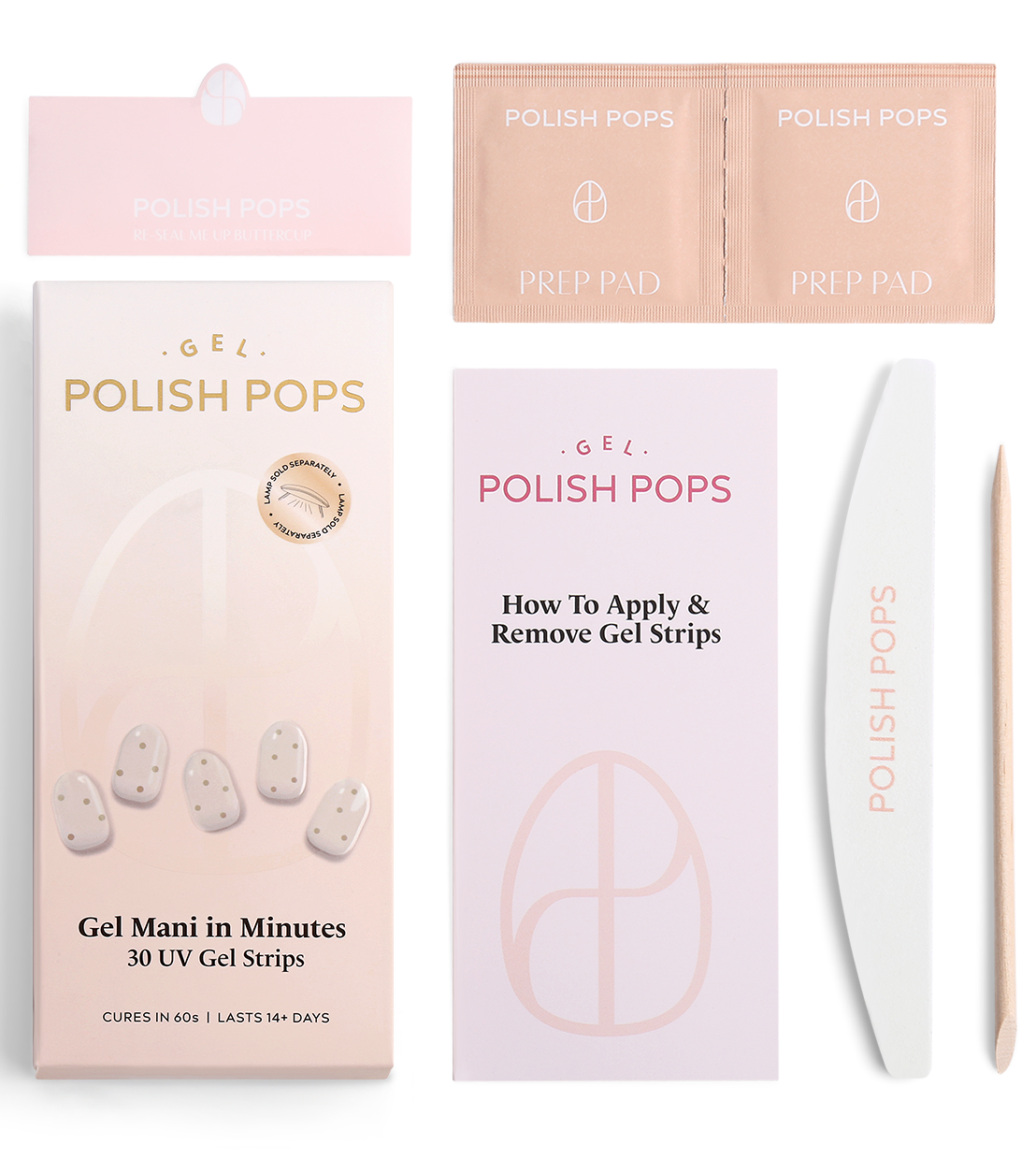 Get a picture perfect manicure in minutes with Polish Pops! Application is easy, just peel, press, cure, and admire!