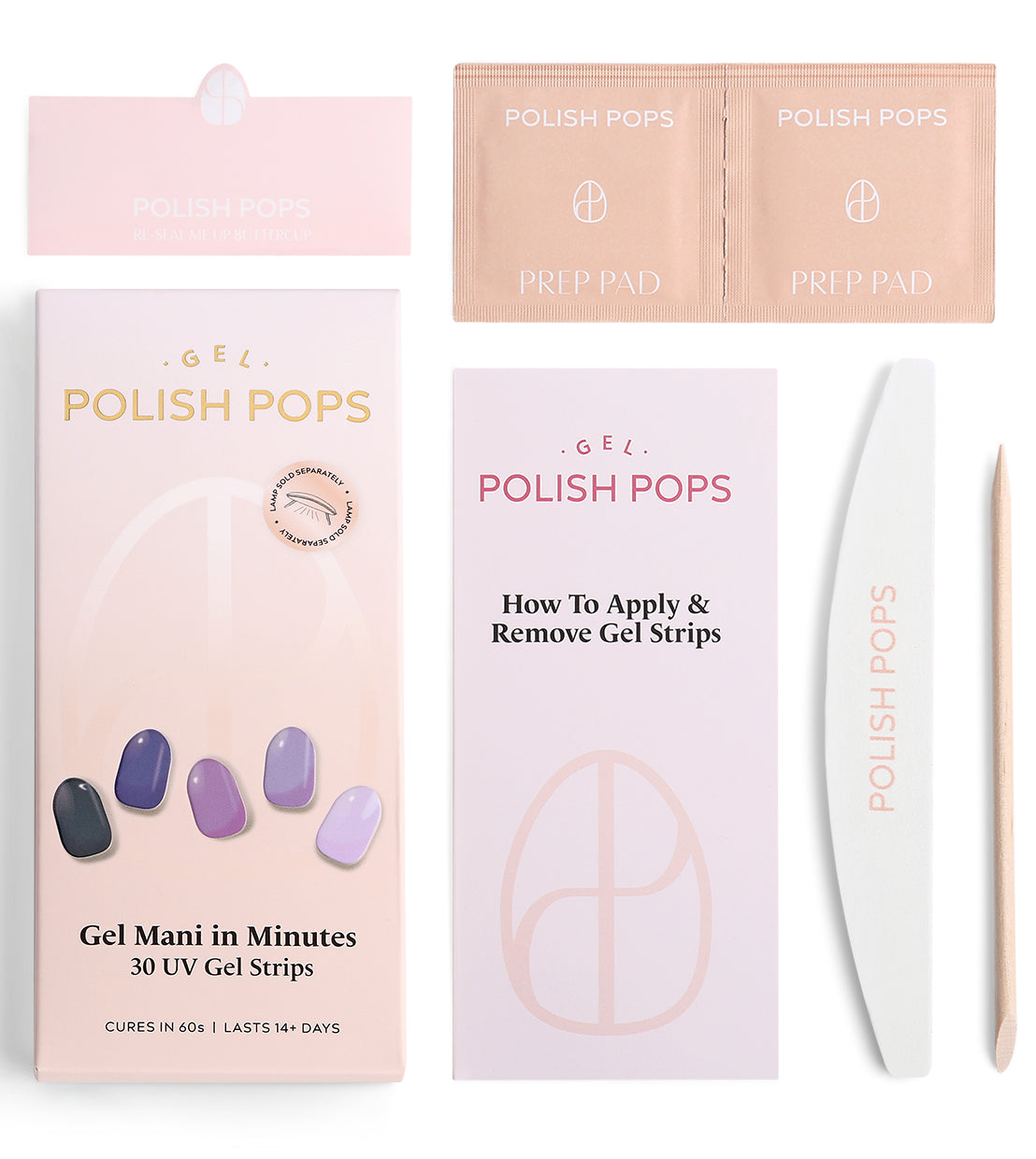 Get a picture perfect manicure in minutes with Polish Pops! Application is easy, just peel, press, cure, and admire!