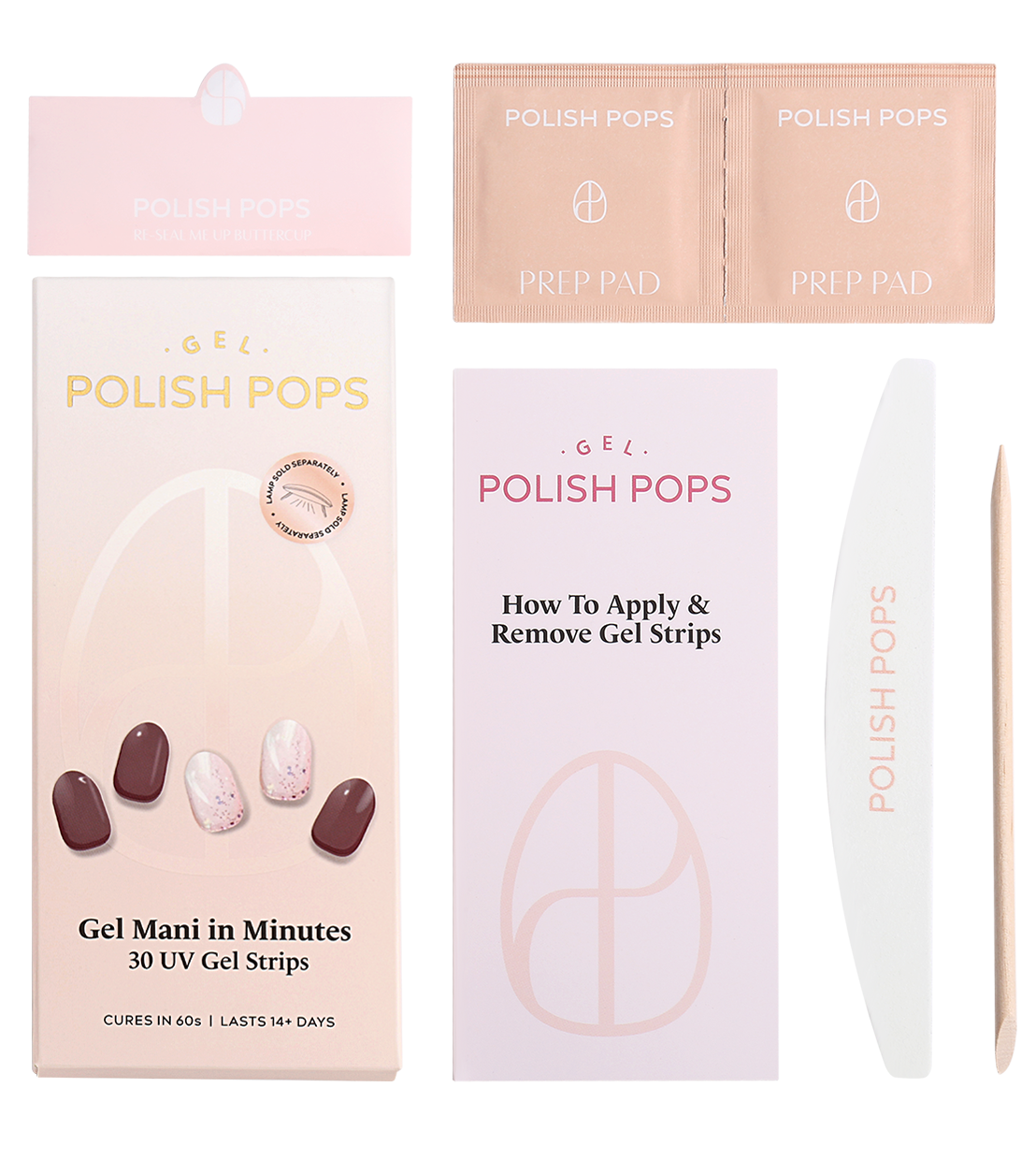 Get a picture perfect manicure in minutes with Polish Pops! Application is easy, just peel, press, cure, and admire!