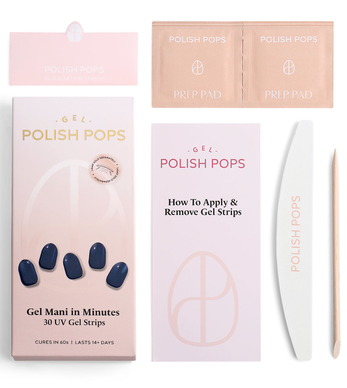 Get a picture perfect manicure in minutes with Polish Pops! Application is easy, just peel, press, cure, and admire!