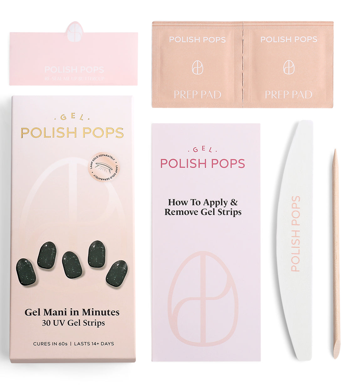 Get a picture perfect manicure in minutes with Polish Pops! Application is easy, just peel, press, cure, and admire!