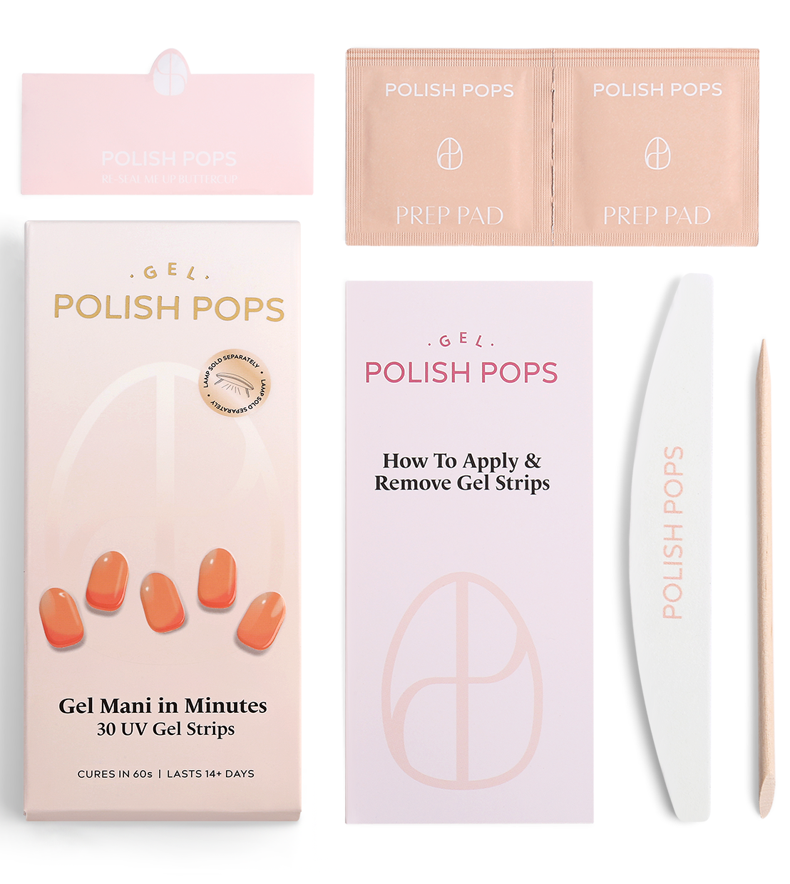 Get a picture perfect manicure in minutes with Polish Pops! Application is easy, just peel, press, cure, and admire!