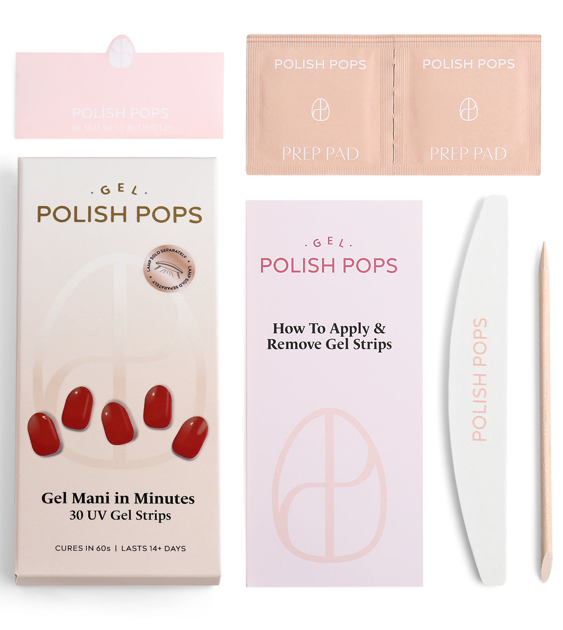 Get a picture perfect manicure in minutes with Polish Pops! Application is easy, just peel, press, cure, and admire!
