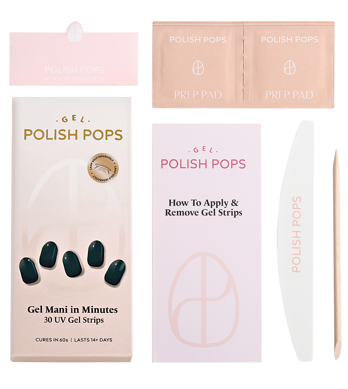 Get a picture perfect manicure in minutes with Polish Pops! Application is easy, just peel, press, cure, and admire!