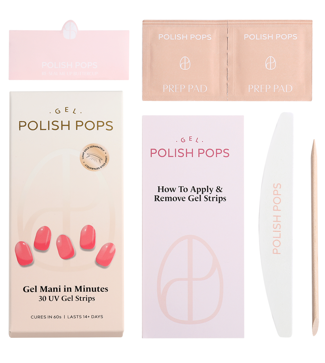 Get a picture perfect manicure in minutes with Polish Pops! Application is easy, just peel, press, cure, and admire!