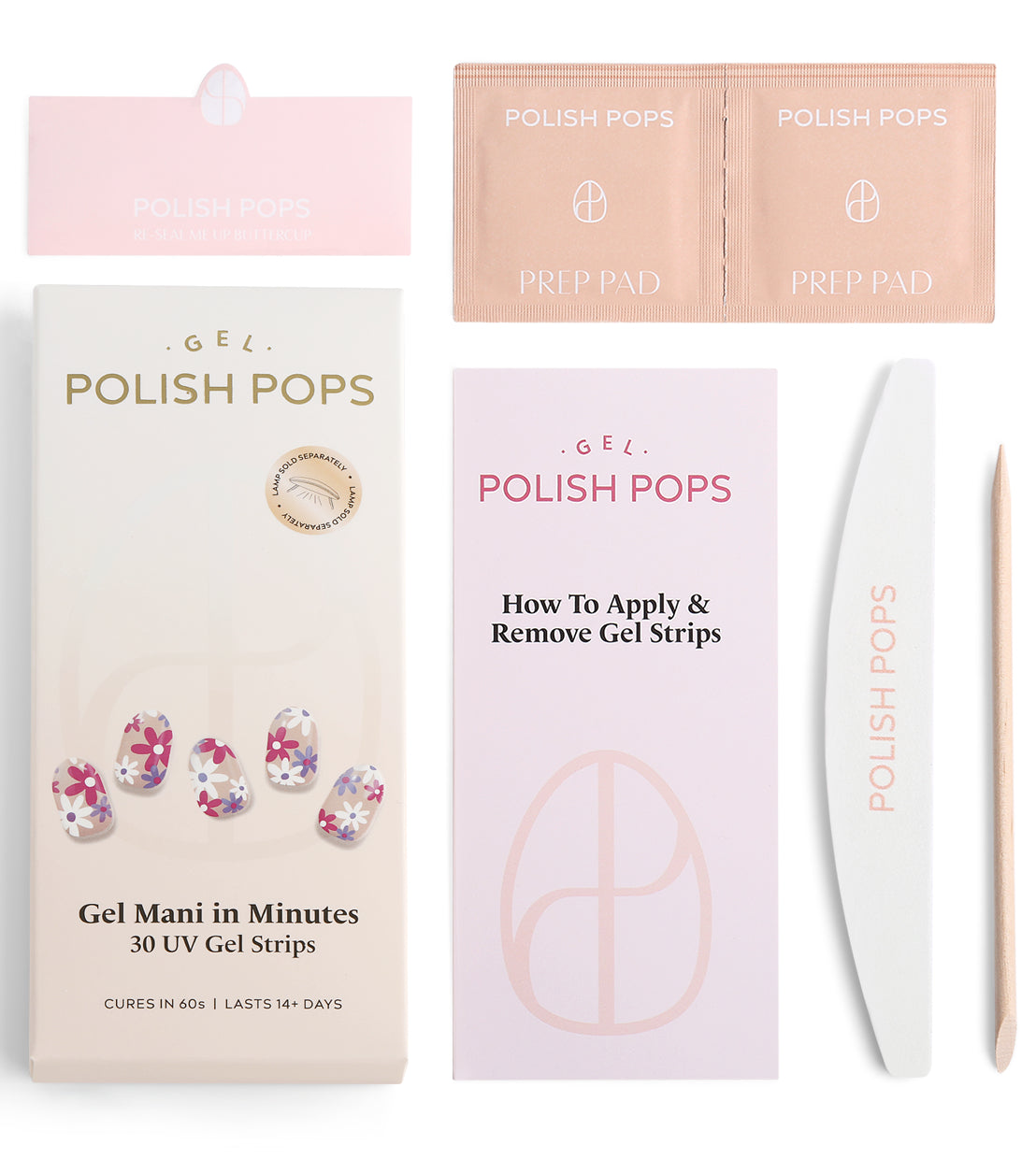 Get a picture perfect manicure in minutes with Polish Pops! Application is easy, just peel, press, cure, and admire!