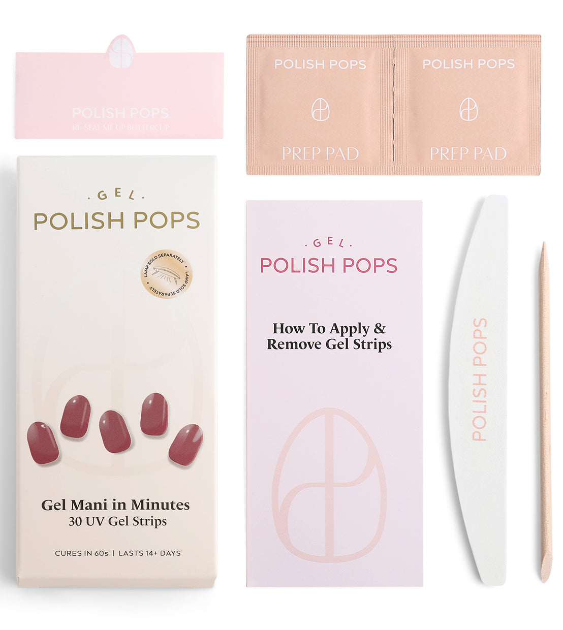 Get a picture perfect manicure in minutes with Polish Pops! Application is easy, just peel, press, cure, and admire!