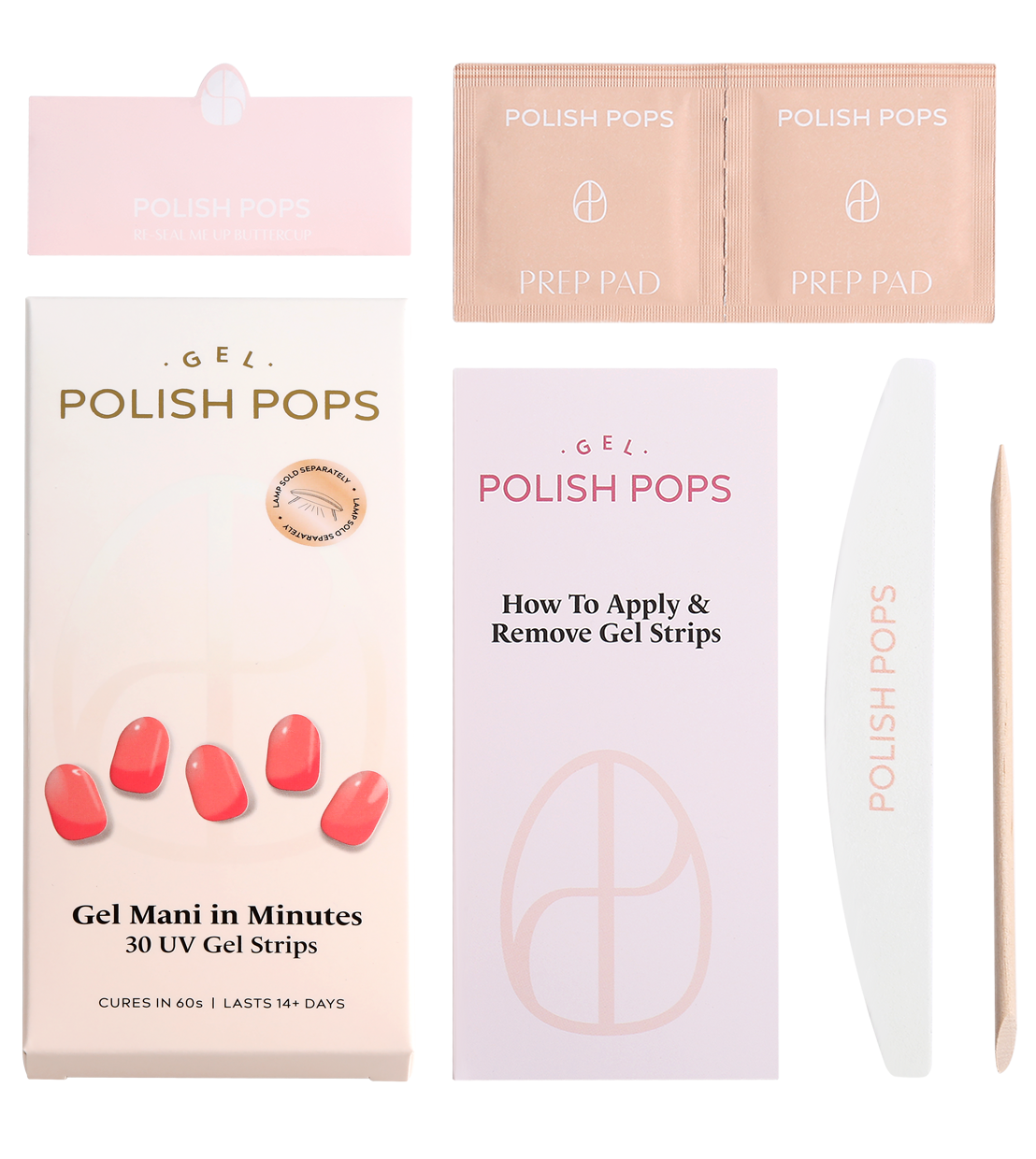 Get a picture perfect manicure in minutes with Polish Pops! Application is easy, just peel, press, cure, and admire!