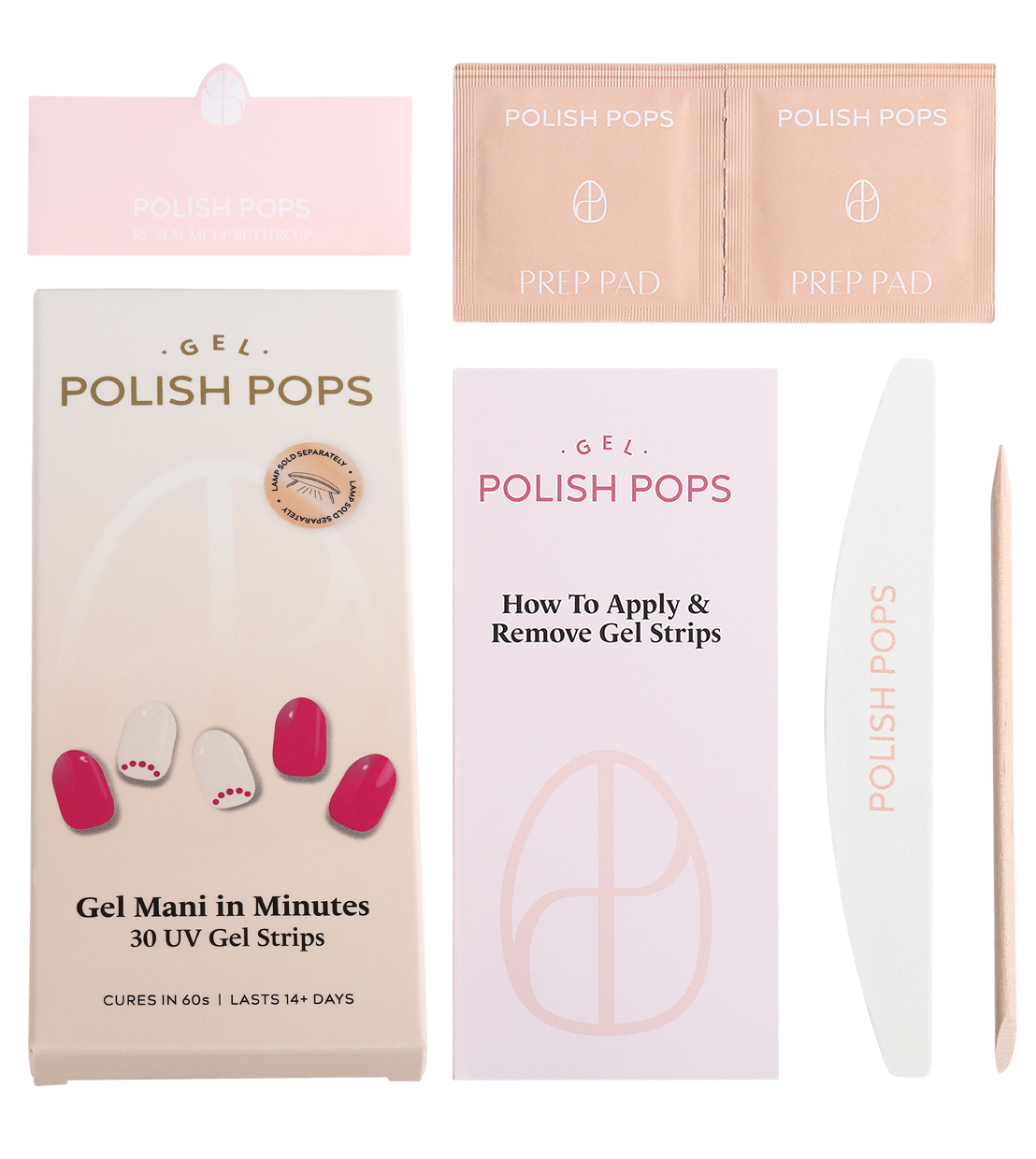 Get a picture perfect manicure in minutes with Polish Pops! Application is easy, just peel, press, cure, and admire!
