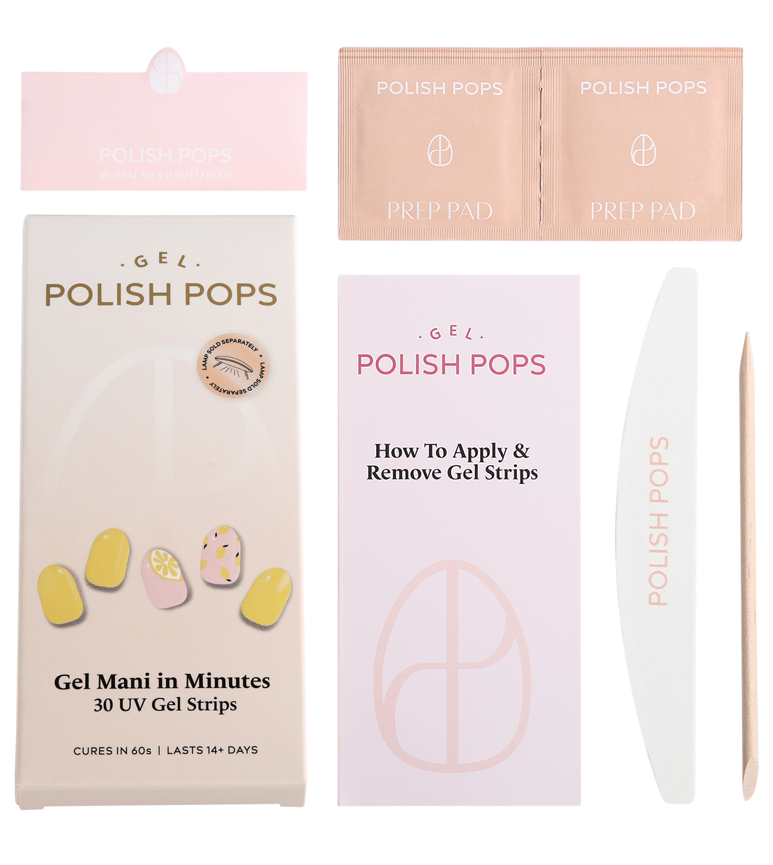 Get a picture perfect manicure in minutes with Polish Pops! Application is easy, just peel, press, cure, and admire!