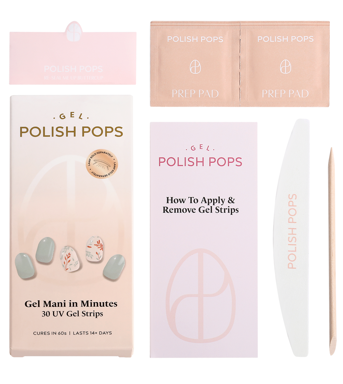 Get a picture perfect manicure in minutes with Polish Pops! Application is easy, just peel, press, cure, and admire!