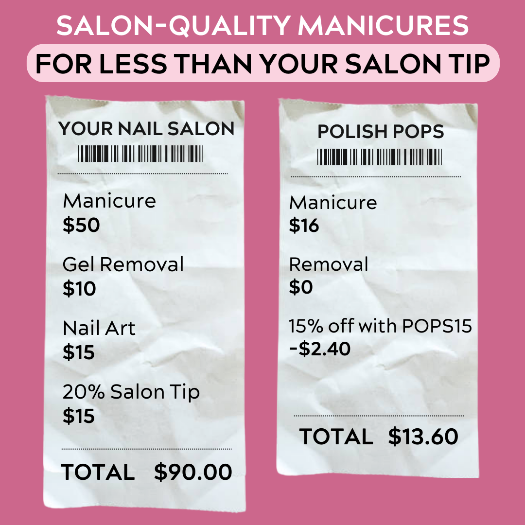 Polish Pops has all your favorite designs and more, so you can have your dream mani week after week without breaking open your piggy bank.
