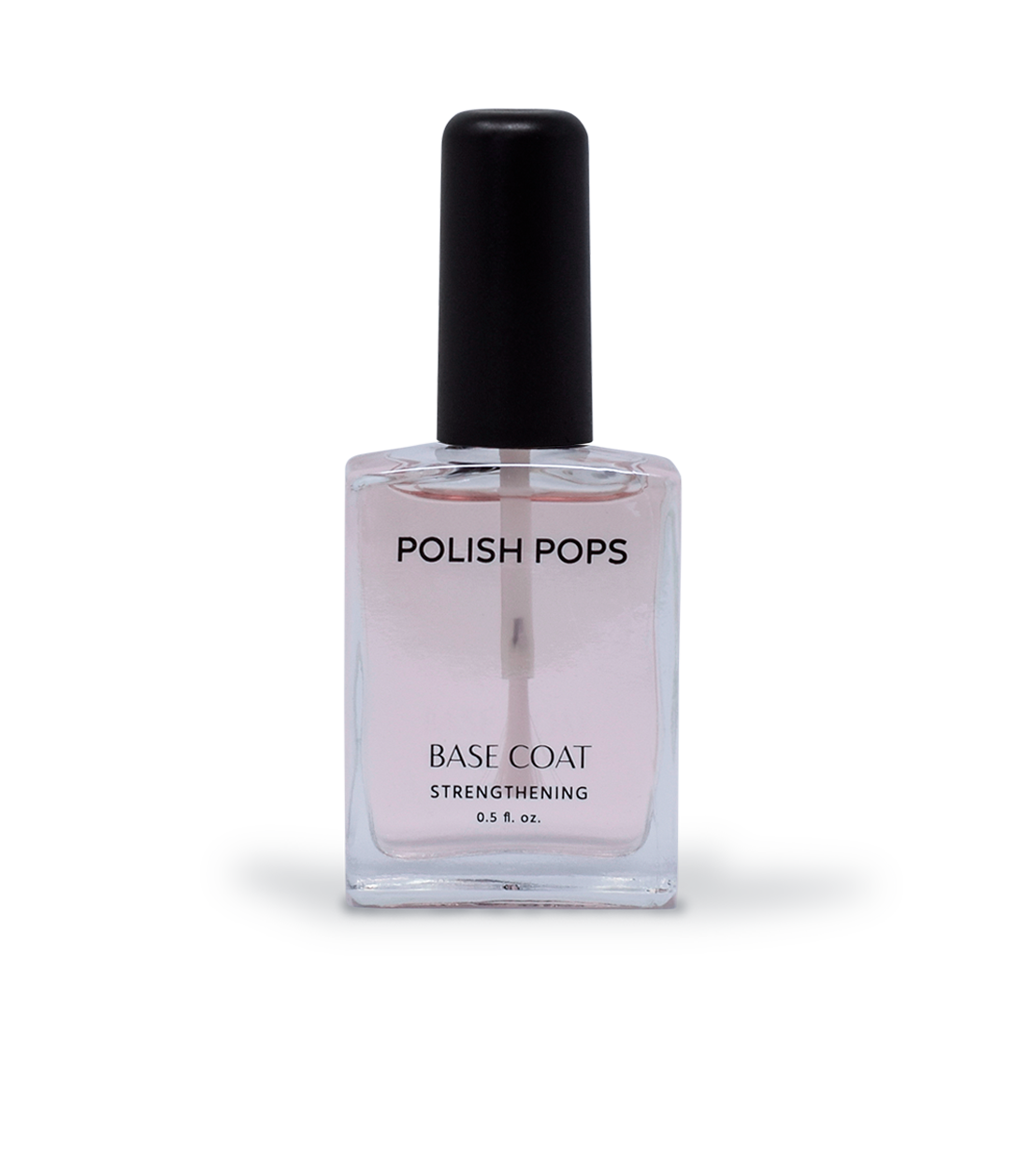 Our base coat strengthens and nourishes your nails. It also helps the nail wrap adhere to your nail because it builds a smooth, oil free surface on your nail. In the case of traditional nail polish, our base coat also prevents nail staining, and will allow for even color application.