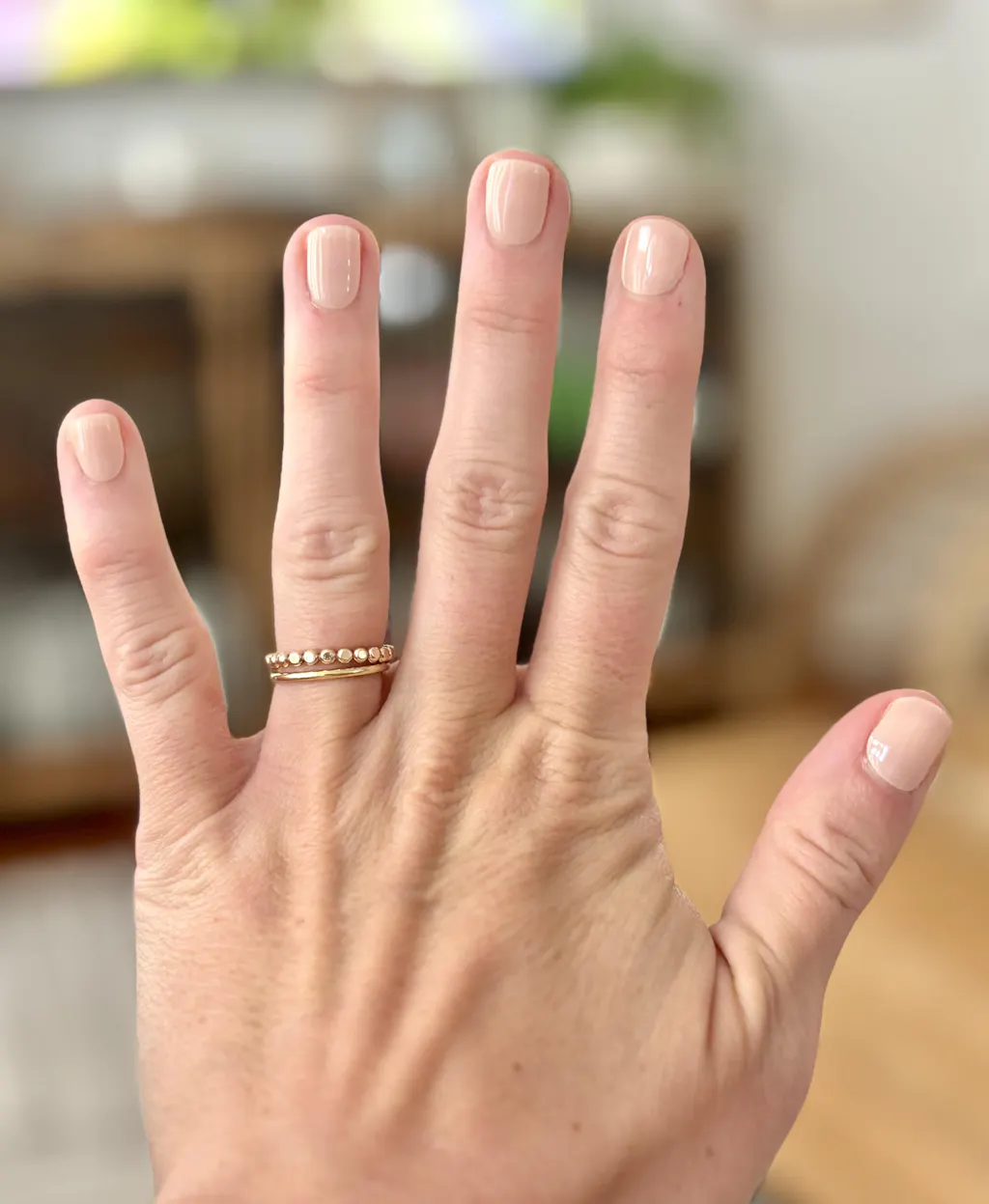 Apply cuticle oil along the edge of the nail wrap and your skin, and shimmy the wooden cuticle stick underneath the edges of the wrap. Then slowly lift the wrap away from the nail.